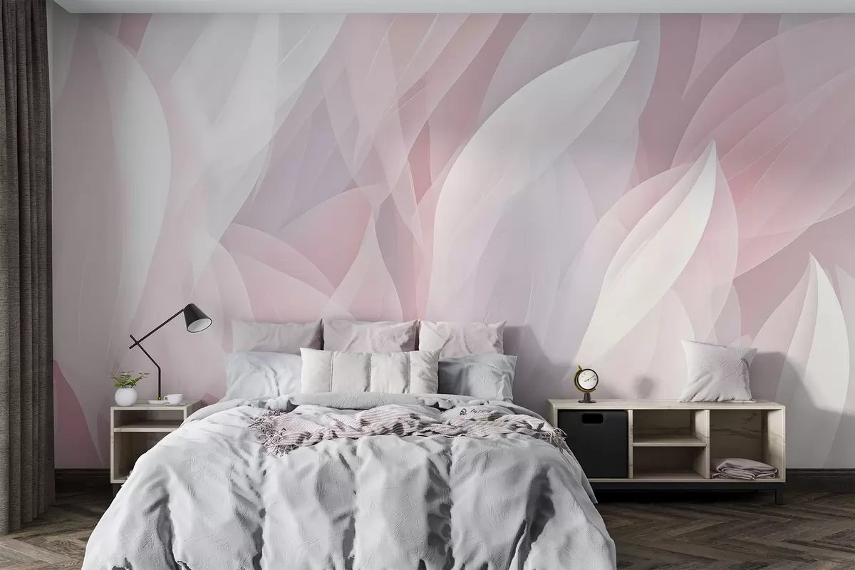 Fototapetak Rózsaszín és fehér árnyalatú, lágy sziromszerű formákat tartalmazó absztrakt minta, amely réteges hatást kelt Nr. w08774