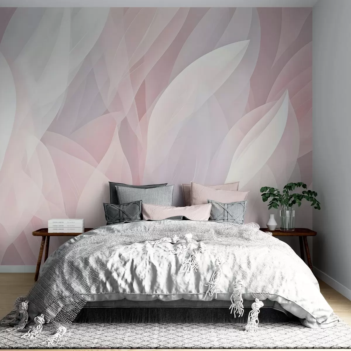 Fototapetak Rózsaszín és fehér árnyalatú, lágy sziromszerű formákat tartalmazó absztrakt minta, amely réteges hatást kelt Nr. w08774