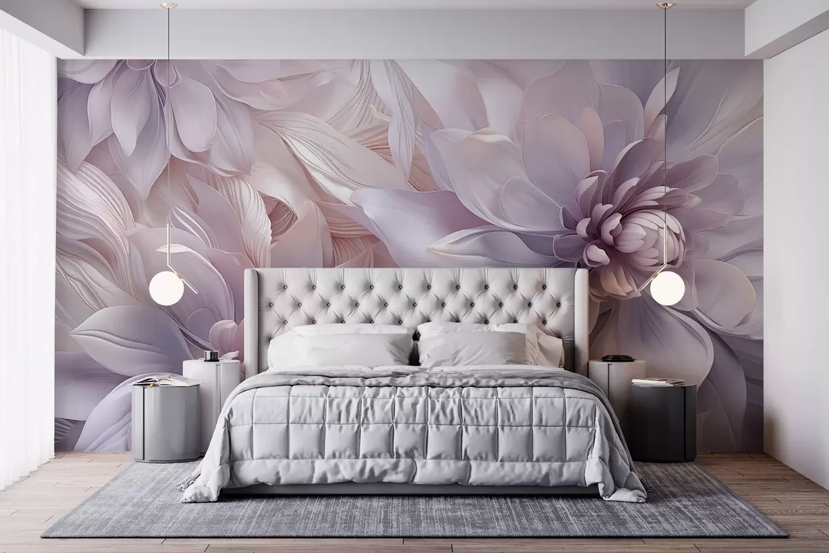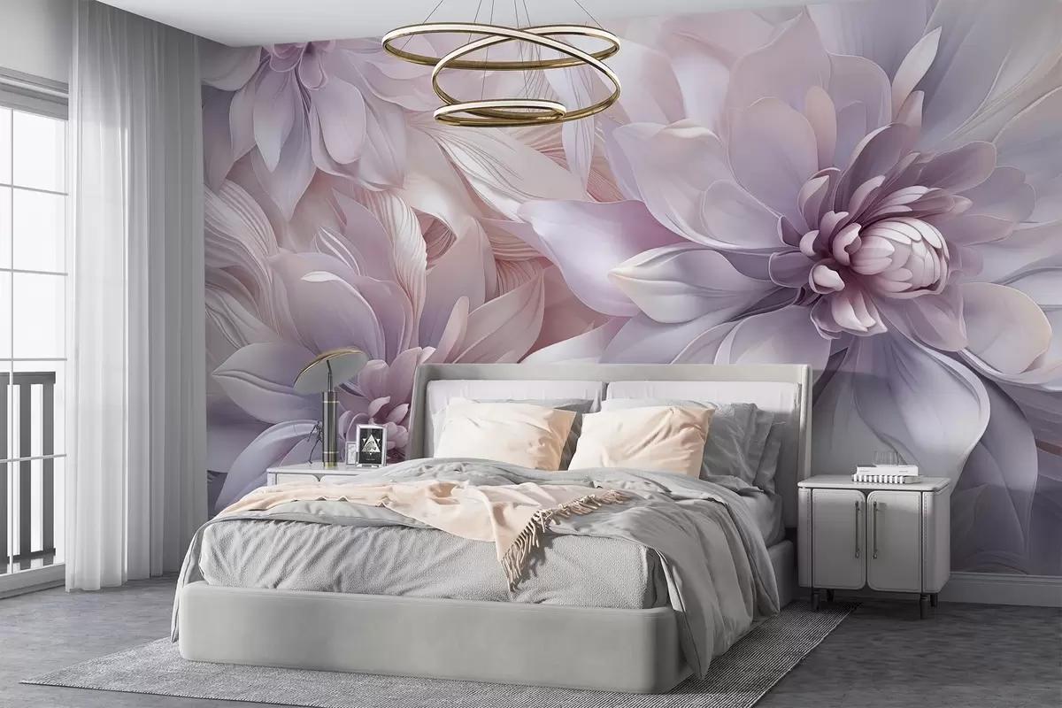 Fototapetak Lágy, réteges virágok a halvány rózsaszín, levendula és fehér árnyalataiban, finom szirmokkal és bonyolult részletekkel Nr. w08783