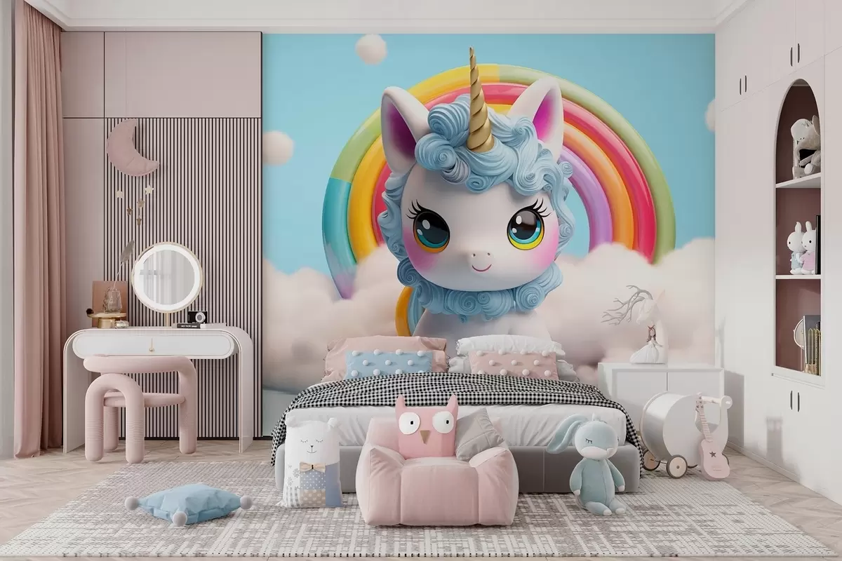 Fototapetak 3D aranyos egyszarvú felhőkkel és szivárvánnyal körülvéve Nr. w08848