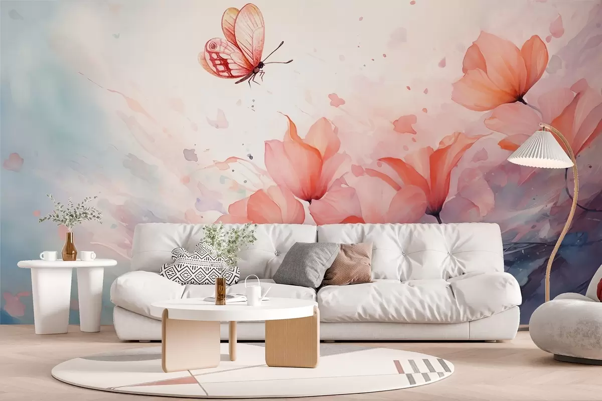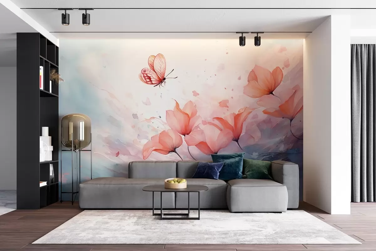 Fototapetak Finom pipacsok egy pillangóval akvarell stílusban Nr. w08849