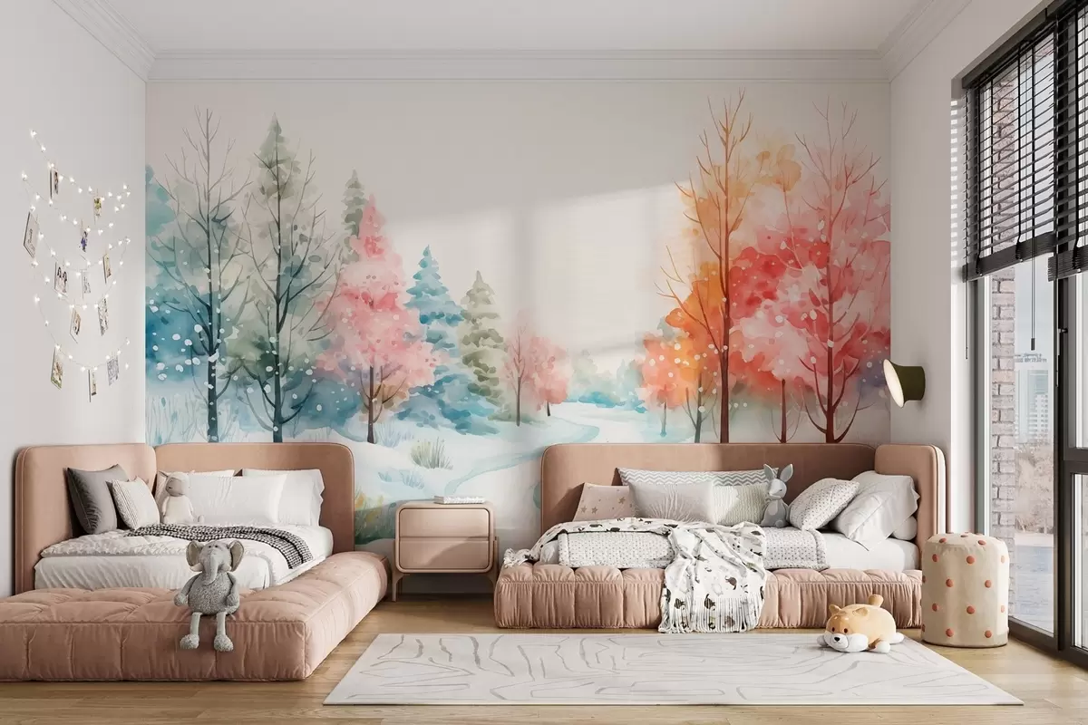 Fototapetak Élénk téli erdő akvarell stílusban Nr. w08856