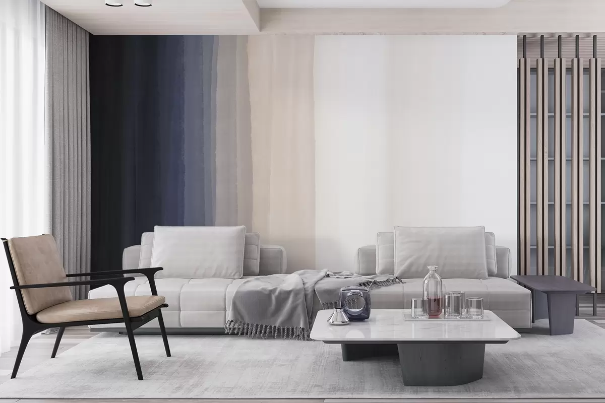 Fototapetak Absztrakt, minimalista, függőleges csíkozású, sötétkék, világos barack és fehér színű csíkokkal ellátott, gradiens nyomtatás Nr. w08915v1