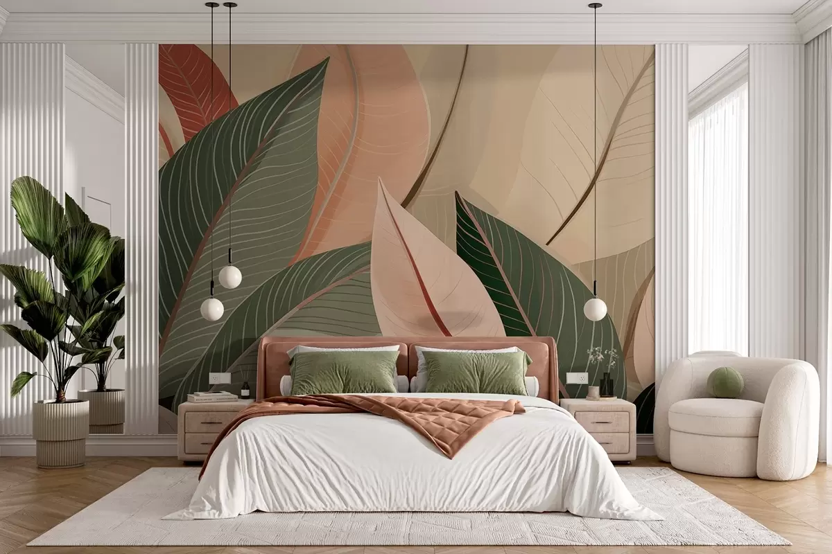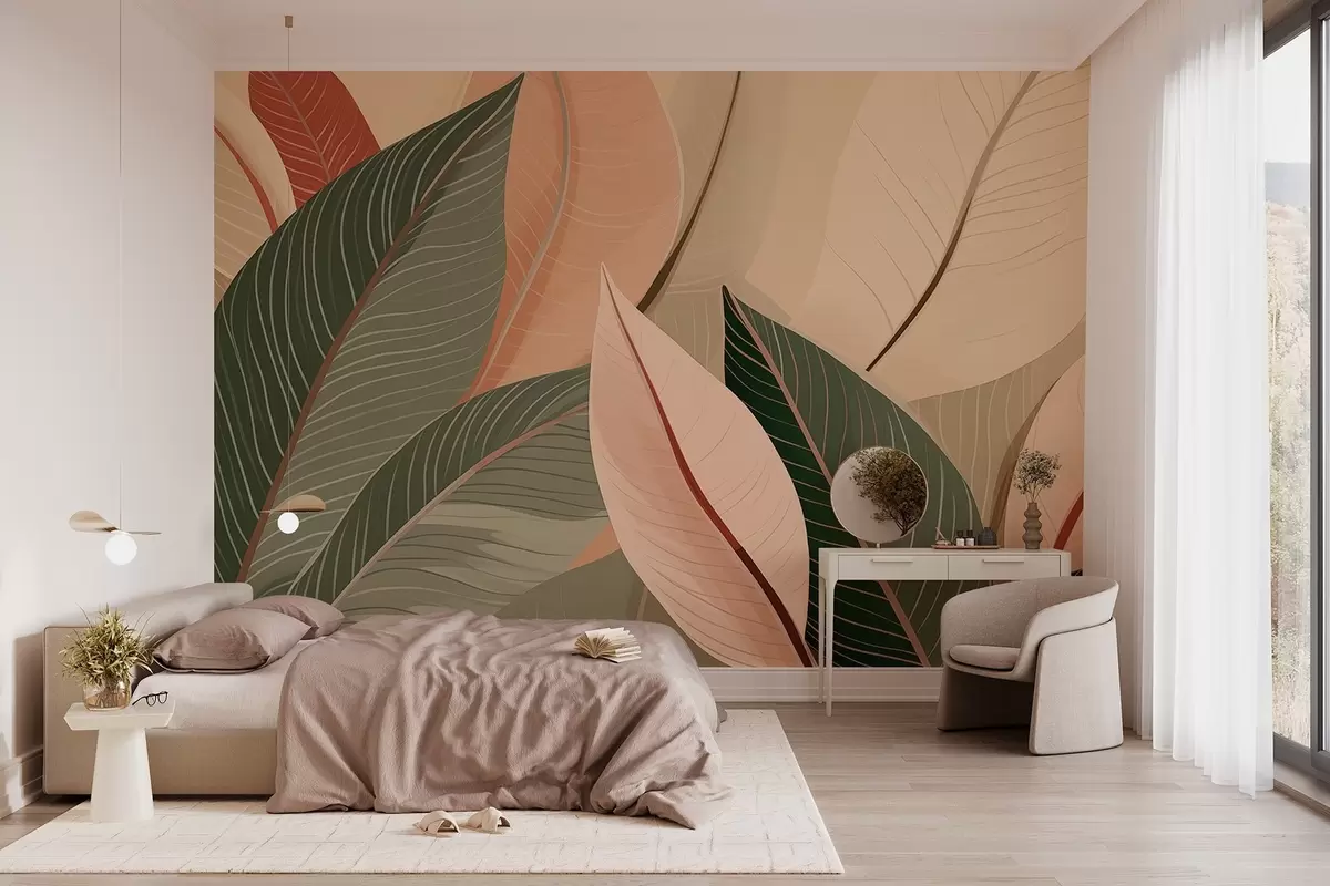 Fototapetak Közelkép az olajzöld és rózsaszín-krém színű levelekről Nr. w08944