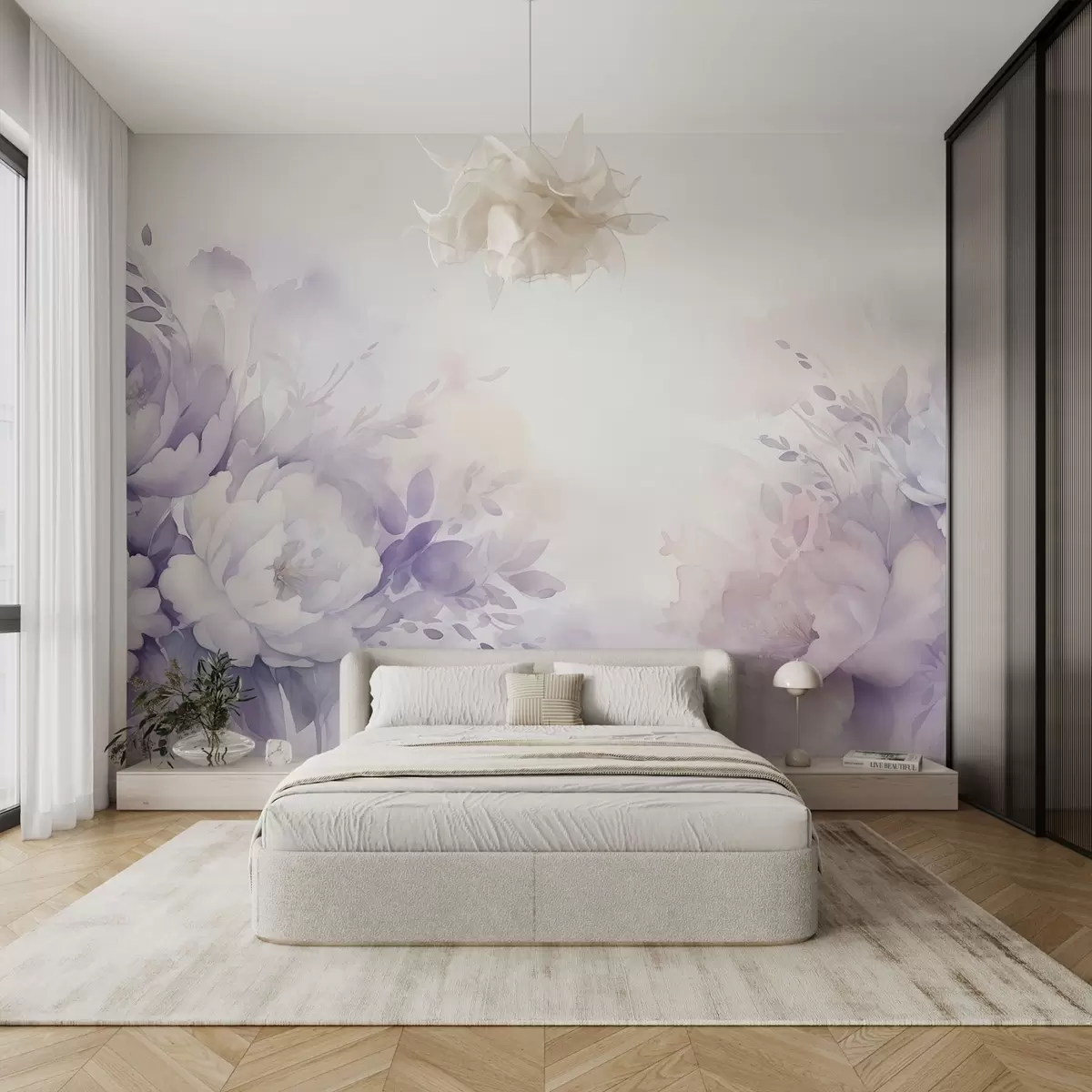 Fototapetak Nagy, finom lila virágok, akvarell utánzás Nr. w08946