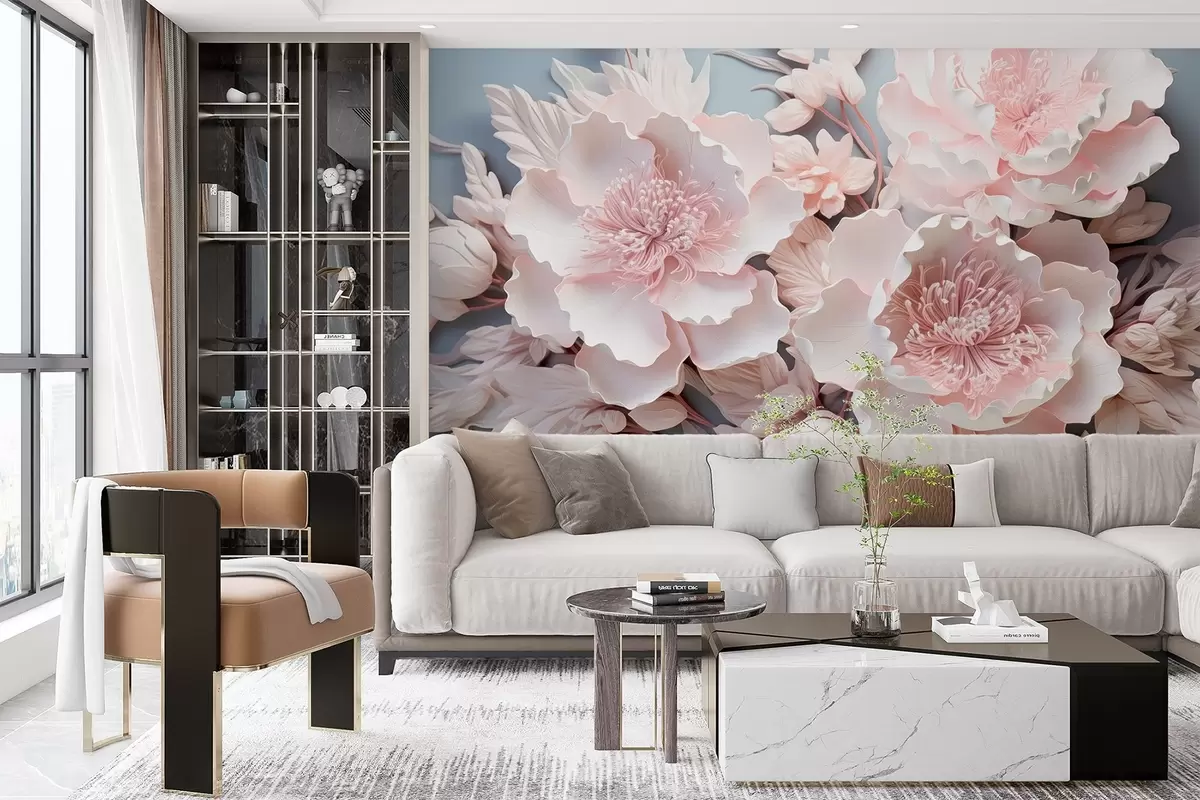 Fototapetak Volumenes rózsaszín virágok finom árnyalatokban Nr. w08988