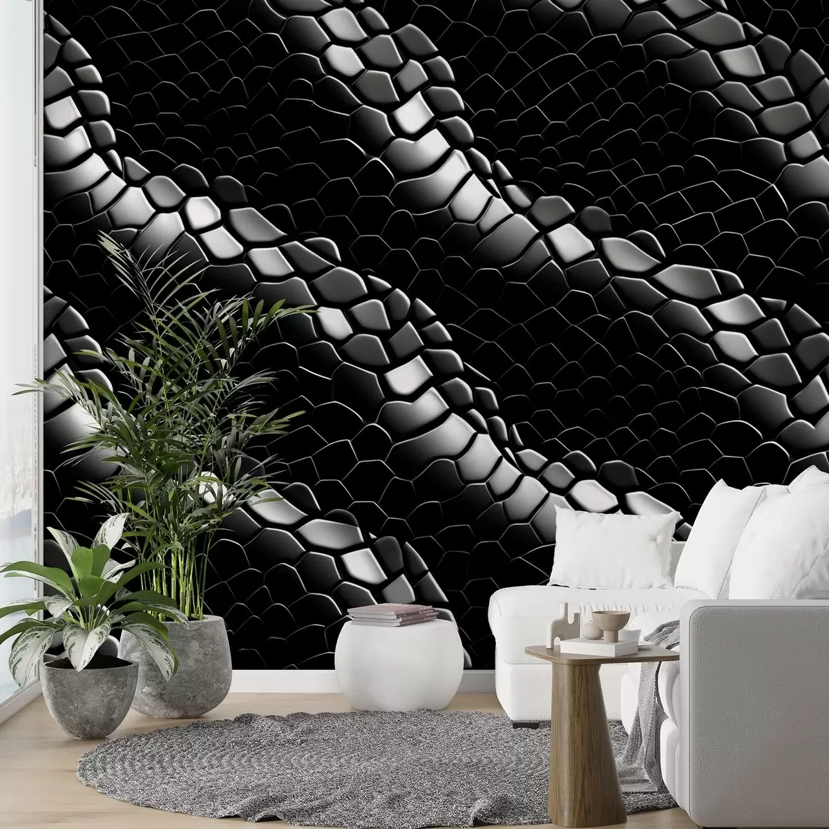 Fototapetak Fekete-fehér hullámok a kígyóbőr textúrájában Nr. w08995