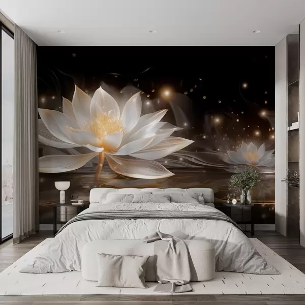 Fototapetak Elegáns fehér tavirózsák sötét vízen Nr. w09021
