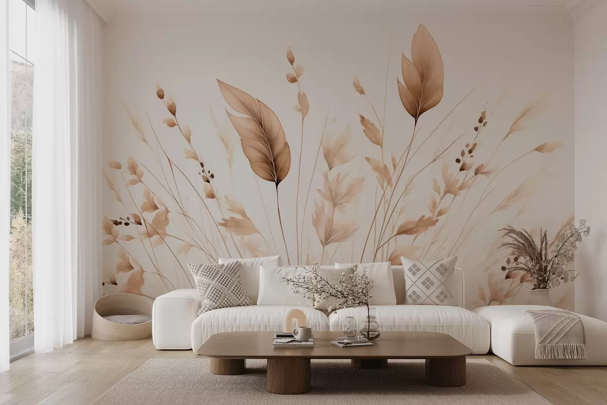 Fototapetak Légies, száraz fűszálak tánca a szélben, nyugodt bézs színekben Nr. w09045