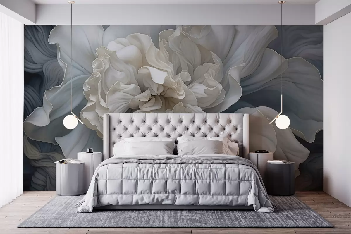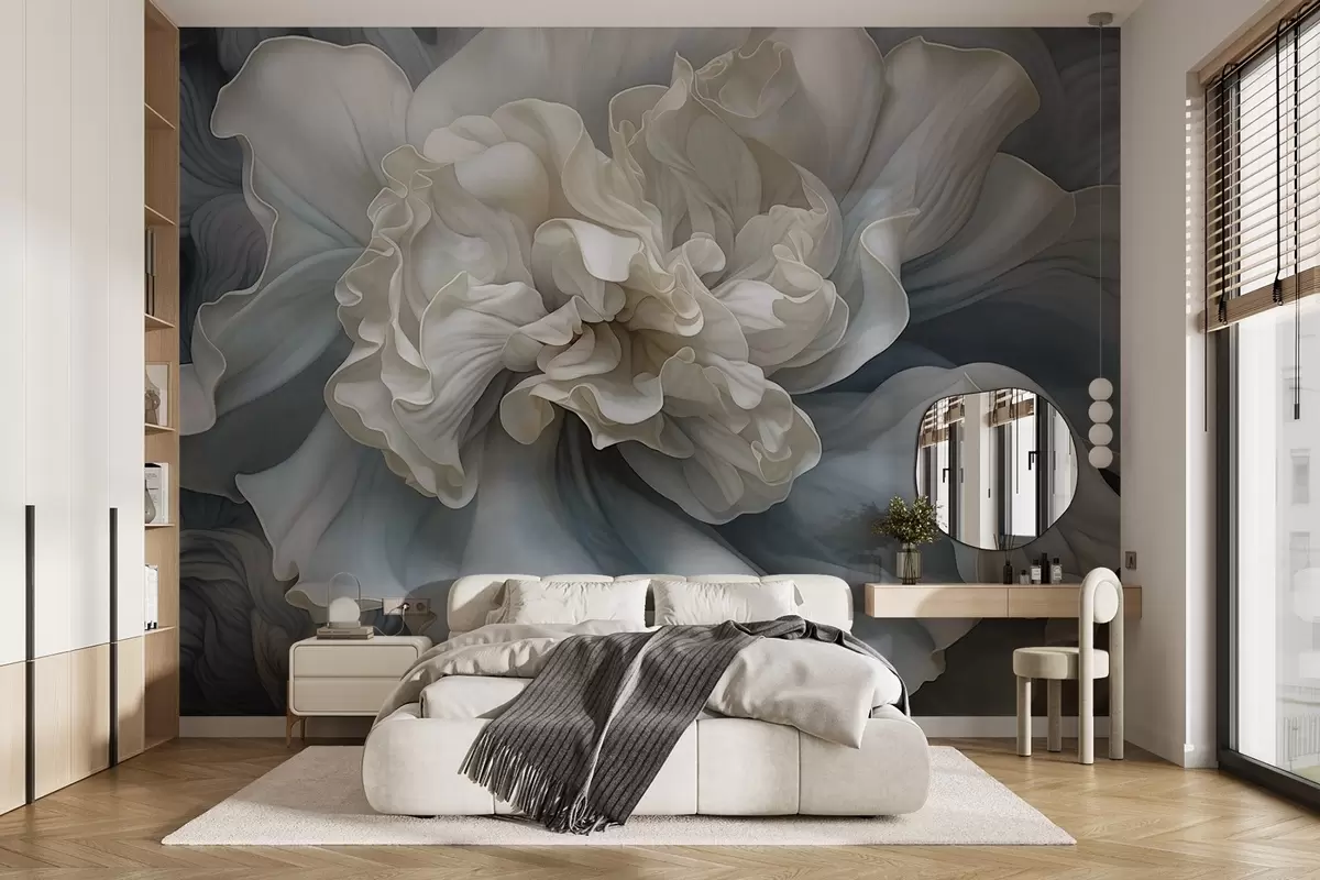 Fototapetak Absztrakt nagy dekoratív virág sok szirommal, lágy és finom, kék és szürke árnyalatokkal a háttérben Nr. w09055