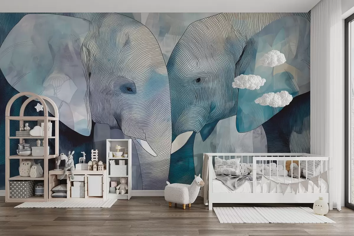 Fototapetak Aranyos kék elefántok akvarell stílusban Nr. w09098