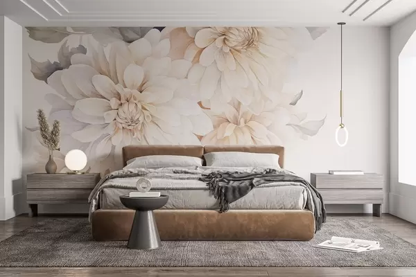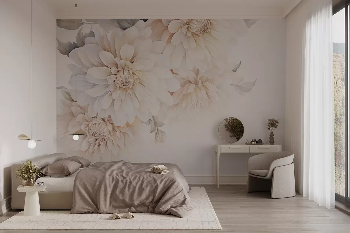 Fototapetak Pasztell dáliák lágy, finom barack és fehér könnyű szirmokkal, akvarell stílusban, lágy háttérrel Nr. w09115