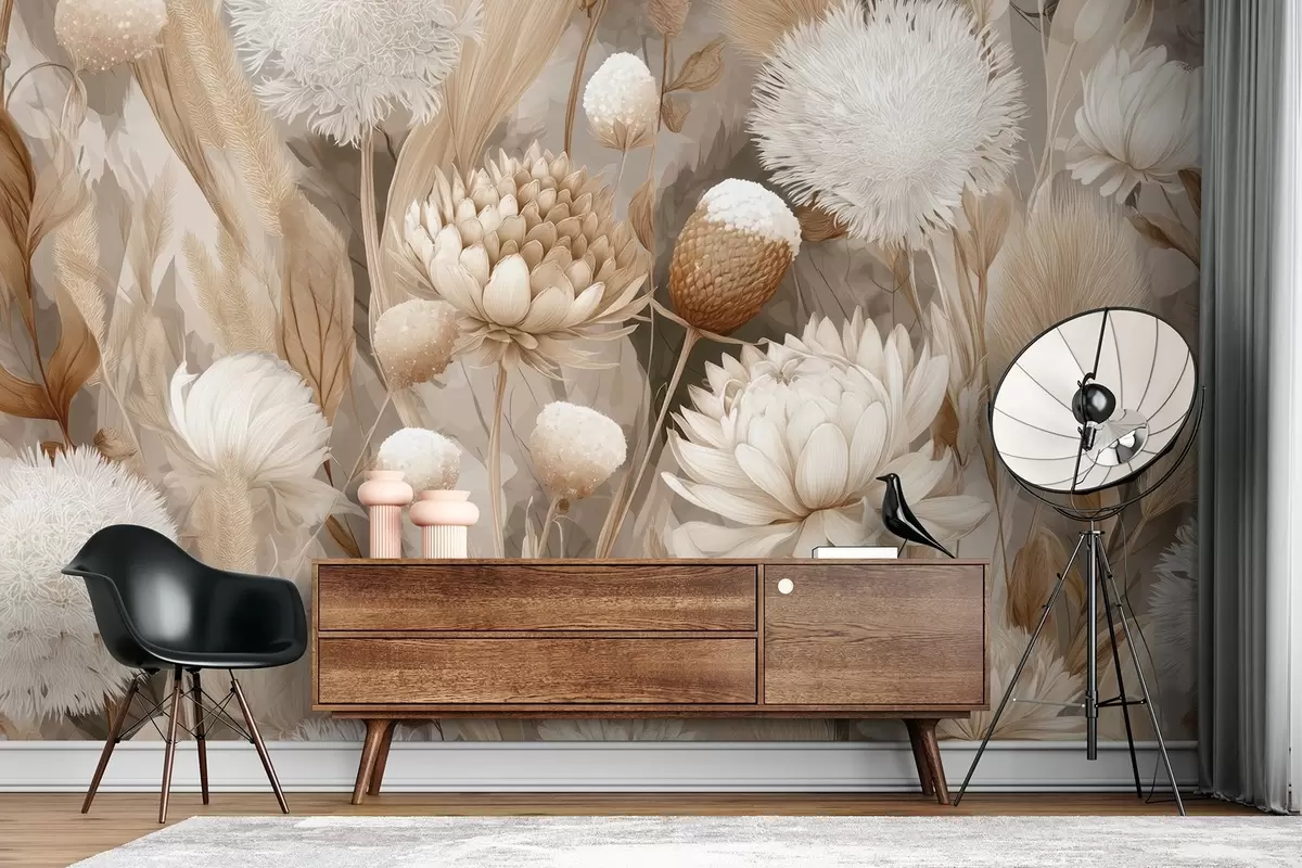 Fototapetak Boho Harmony: Bézs és krém tónusú texturált virágok Nr. w09121