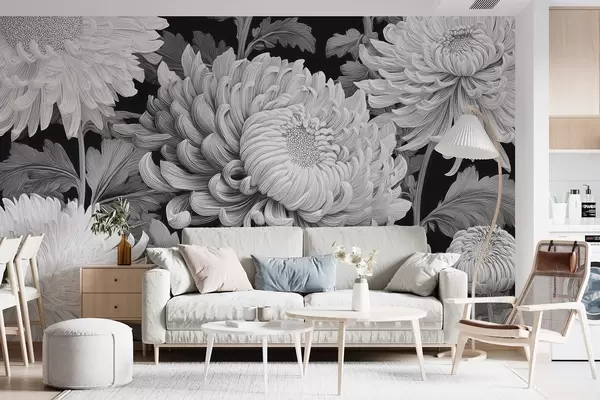 Fototapetak Fekete-fehér nagy orchideák levelekkel Nr. w09125v1