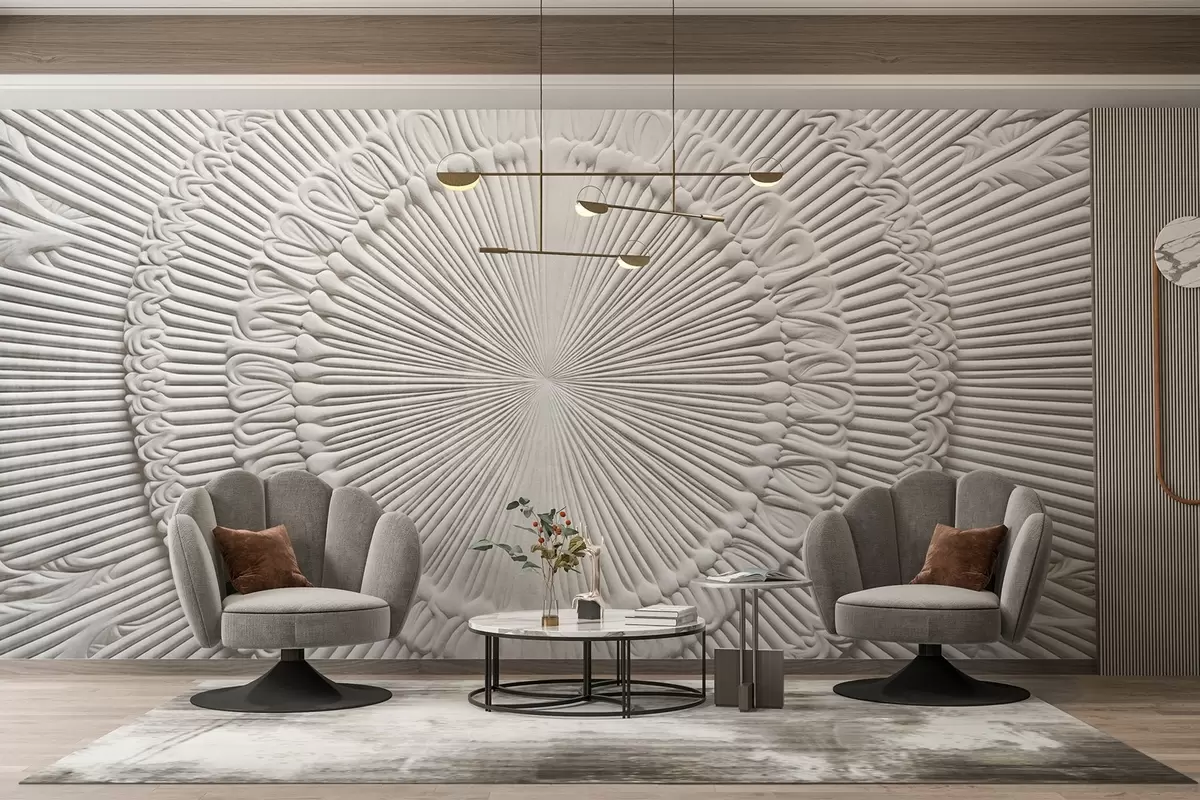 Fototapetak Absztrakt texturált kör alakú nyomtatás sugárirányú vonalakkal és dekoratív elemekkel, szimmetrikus mintázat, domborzatos textúra Nr. w09154