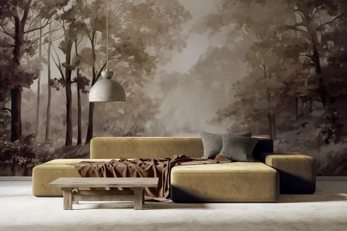 Fototapetak Texturált erdei táj, fák bézs és barna levelekkel, pasztell színpaletta Nr. w09210