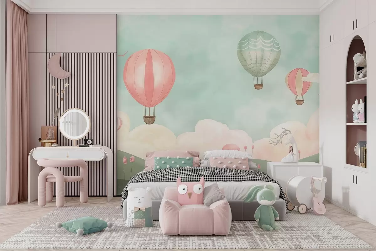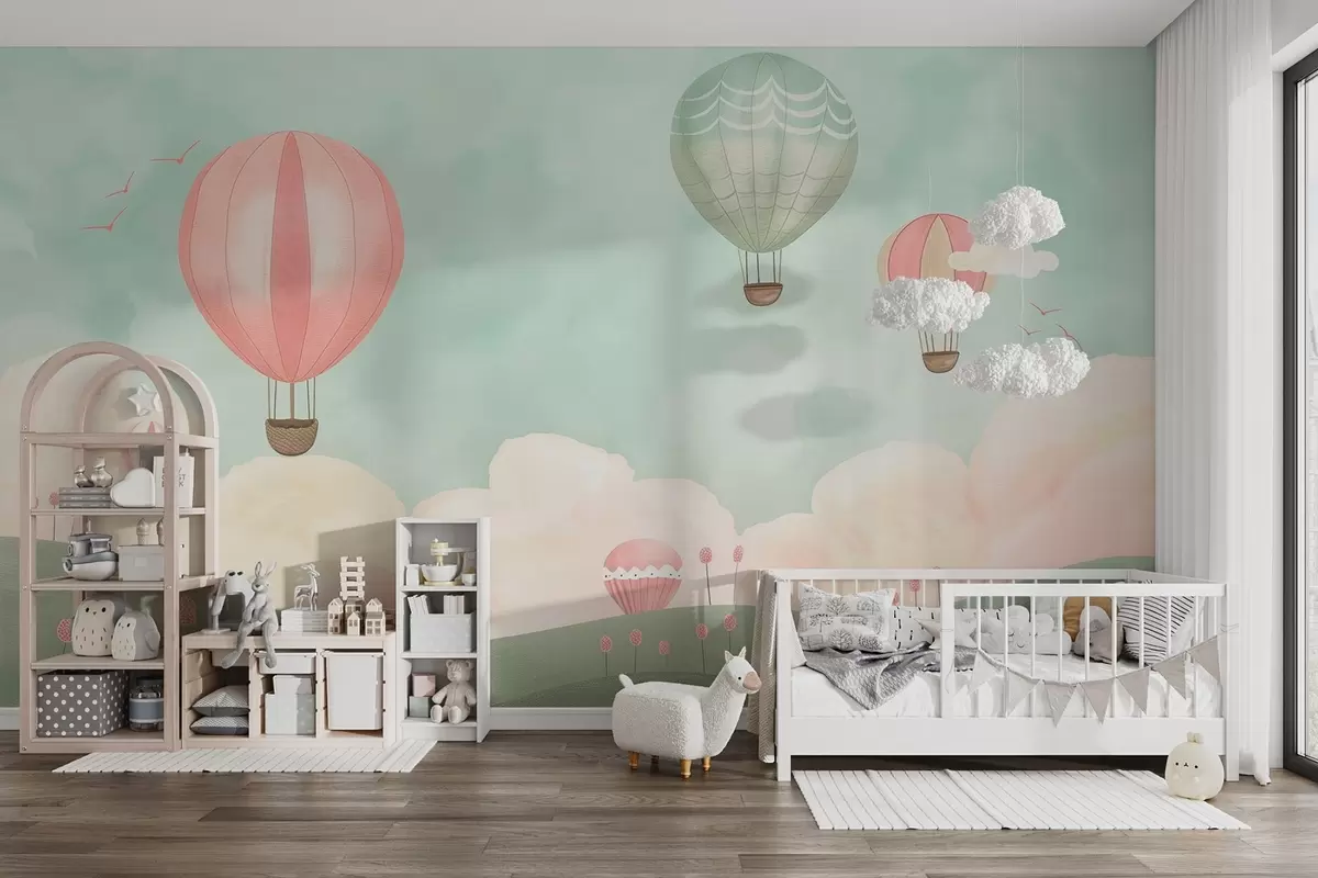 Fototapetak Hőlégballonok a felhős dombok felett Nr. w09228