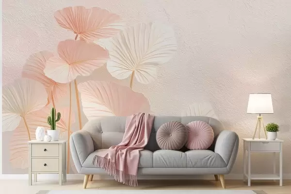 Fototapetak Elegáns nagy trópusi levelek finom rózsaszín színben Nr. w09252v1