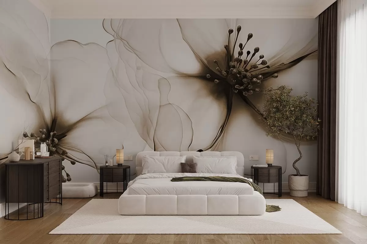 Fototapetak Két áttetsző textúrájú barna virág látható porzókkal, átfedő finom szirmokkal és lágy, áramló textúrával Nr. w09295