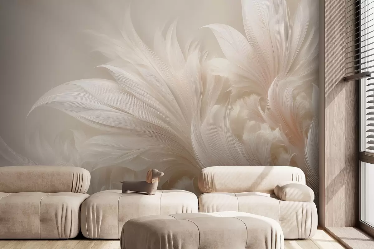 Fototapetak Súlytalan tollak vaníliakrémes árnyalatokban Nr. w09302