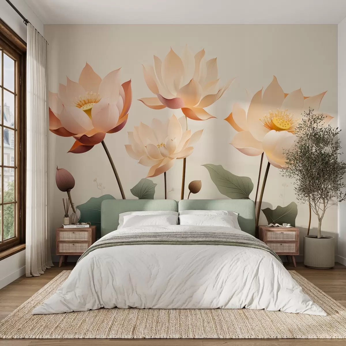 Fototapetak Elegáns lótuszvirágok szelíd pasztell színpalettában Nr. w09306