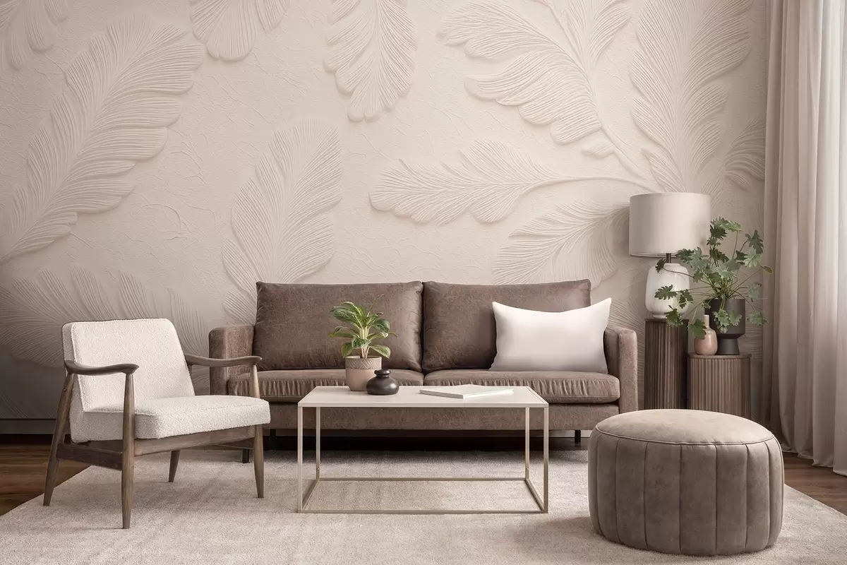 Fototapetak Dombornyomott levelek világos háttéren, repedezett hatással Nr. w09309