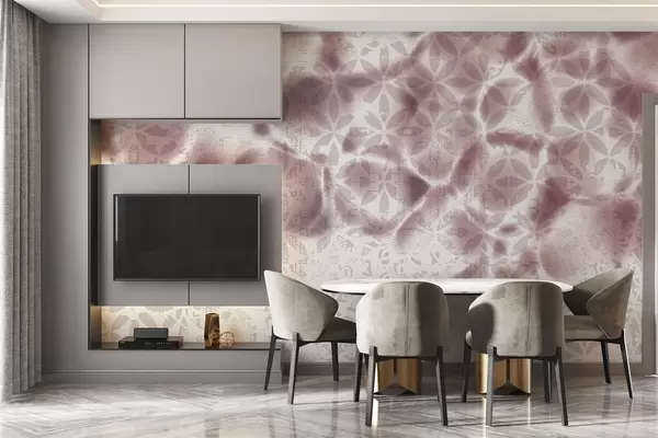 Fototapetak Absztrakt texturált művészet bordo virágos nyomtatással, fakó és elmosódott hatású, lágy és álmodozó hangulatot teremtve Nr. w09322v1