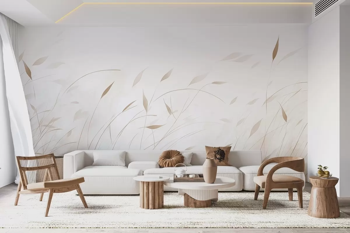 Fototapetak Szélben hullámzó fű, akvarell stílusban, bézs árnyalatokban Nr. w09331v1