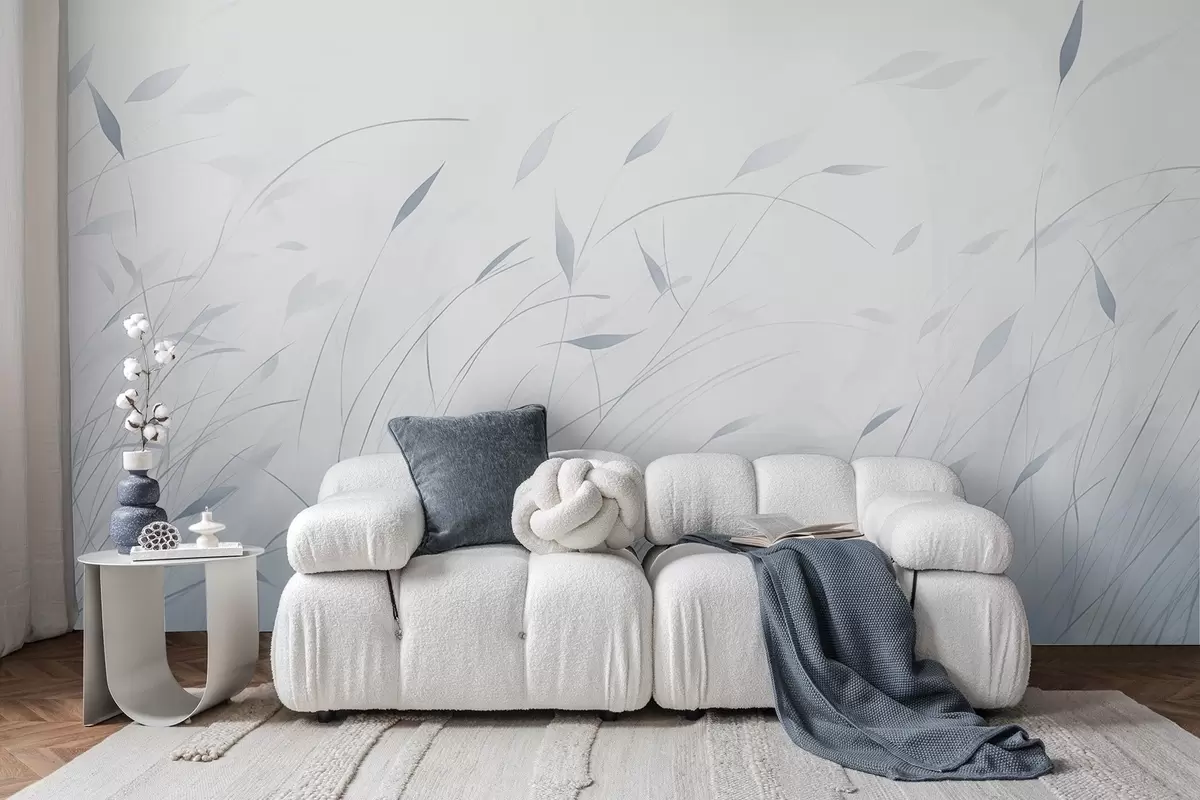 Fototapetak A szélben hullámzó fű, akvarell stílusban, kék árnyalatokban Nr. w09331v2