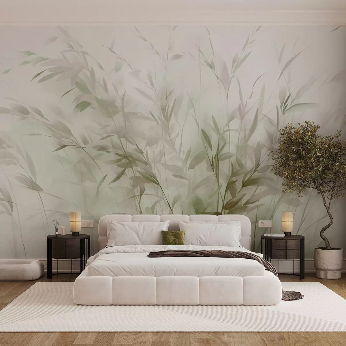Fototapetak Fű és gaz vékony levelekkel és szárakkal, világoszöld és barna színek, lágy és finom ecsetvonások, minimalista nyomtatás Nr. w09342