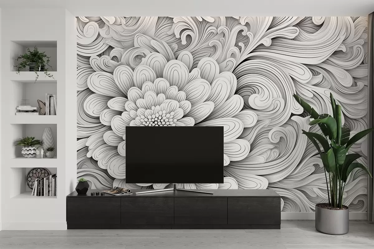 Fototapetak Dekoratív fekete-fehér minta virág és örvények formájában Nr. w09355