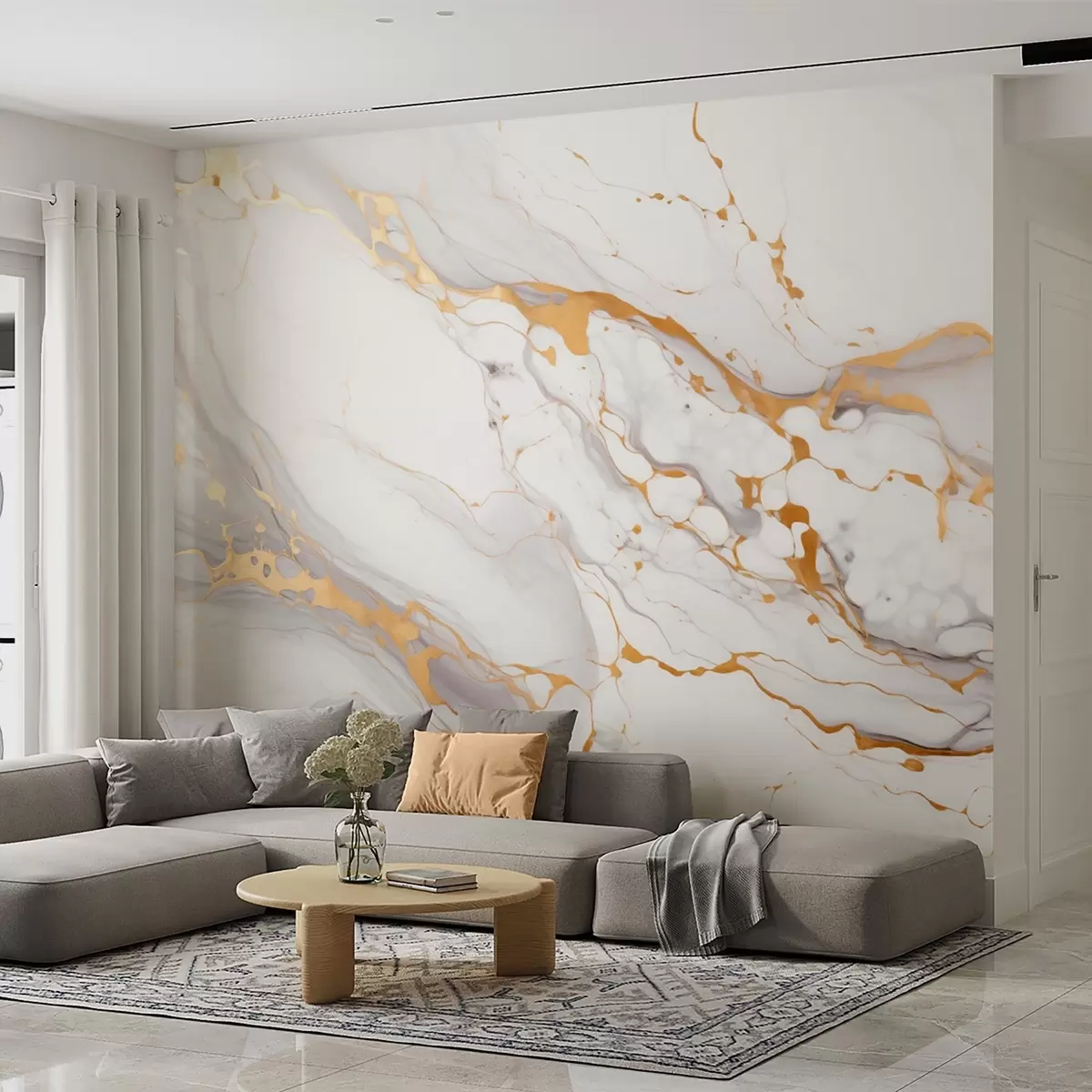 Fototapetak Márvány textúra utánzata lágy szürke átmenetekkel és sárga akcentusokkal Nr. w09362