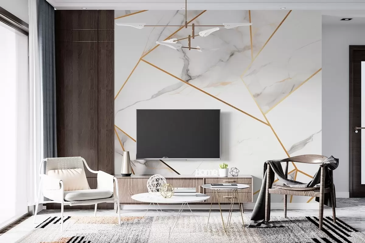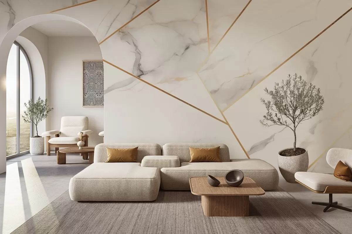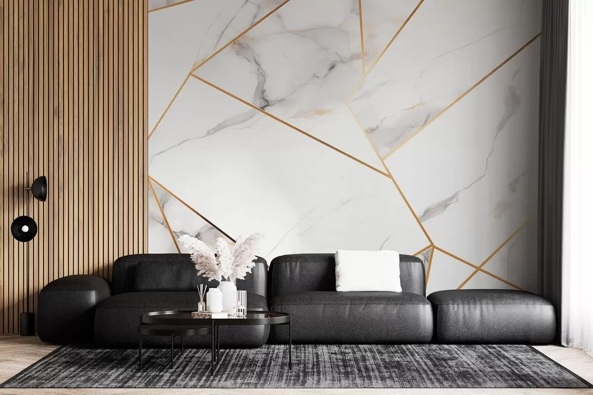 Fototapetak Márványfelület utánzata sárga geometrikus mintával Nr. w09363
