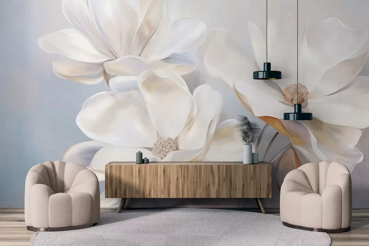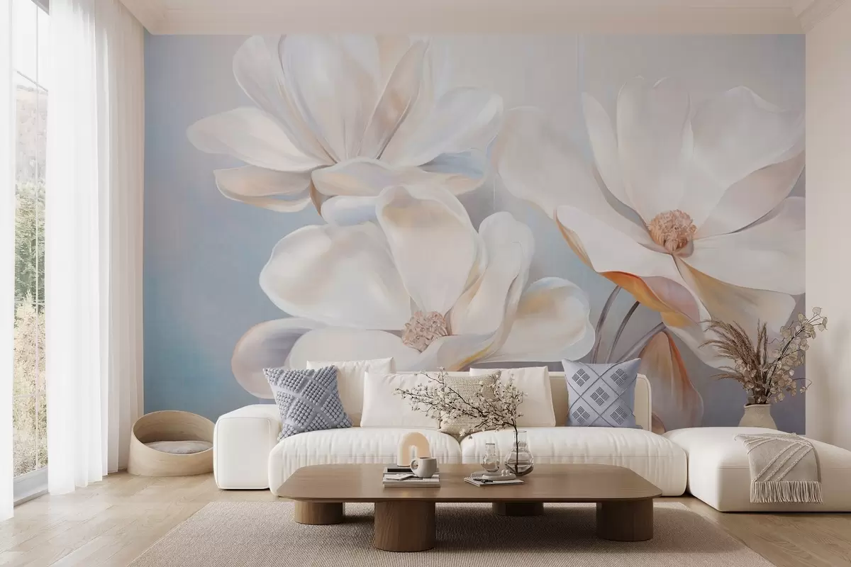 Fototapetak Fehér fantázia magnólia virágok finom textúrájú szirmokkal, puha, absztrakt háttérrel Nr. w09373