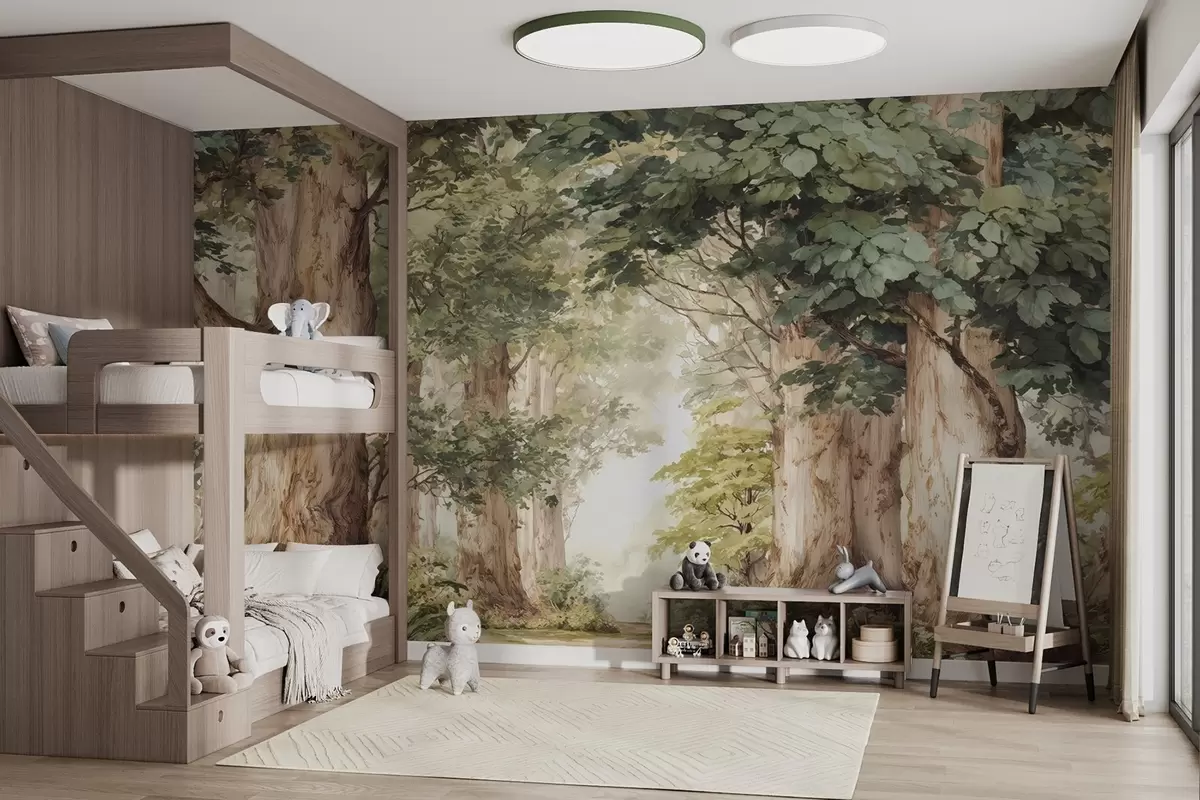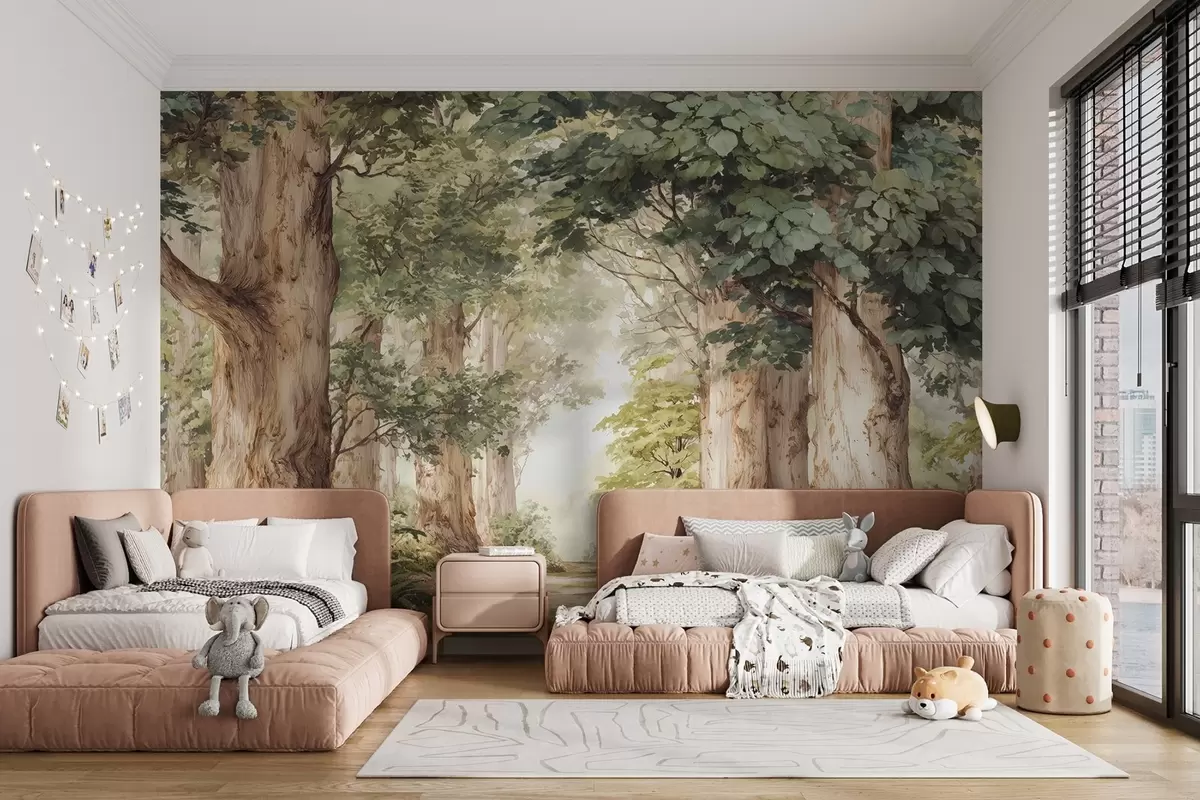 Fototapetak Akvarell stílusú erdei ösvény hatalmas fák között Nr. w09404