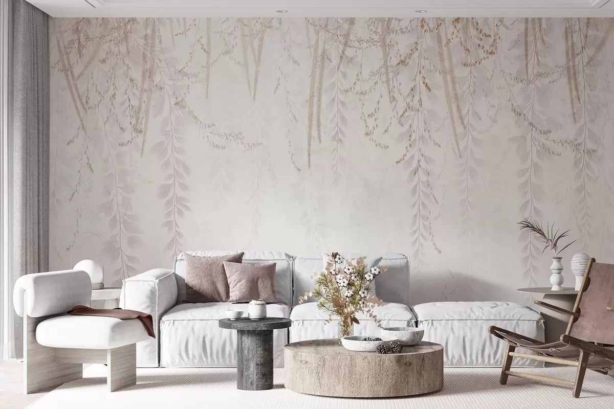 Fototapetak Világos, bézs színű lógó levelek és ágak Nr. w09433