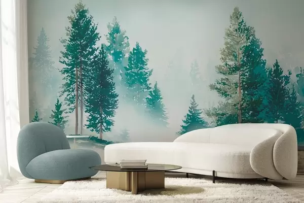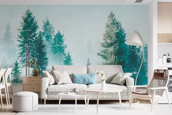 Fototapetak Ködös fenyőerdő akvarell stílusban Nr. w09444