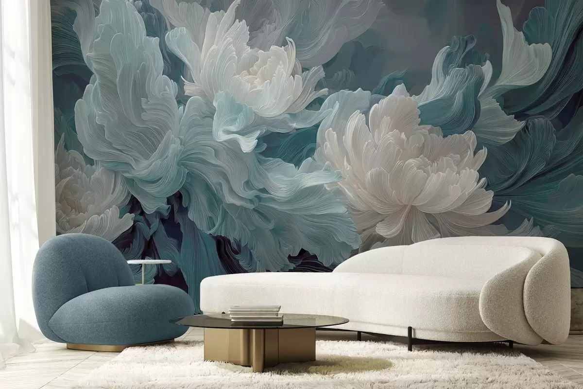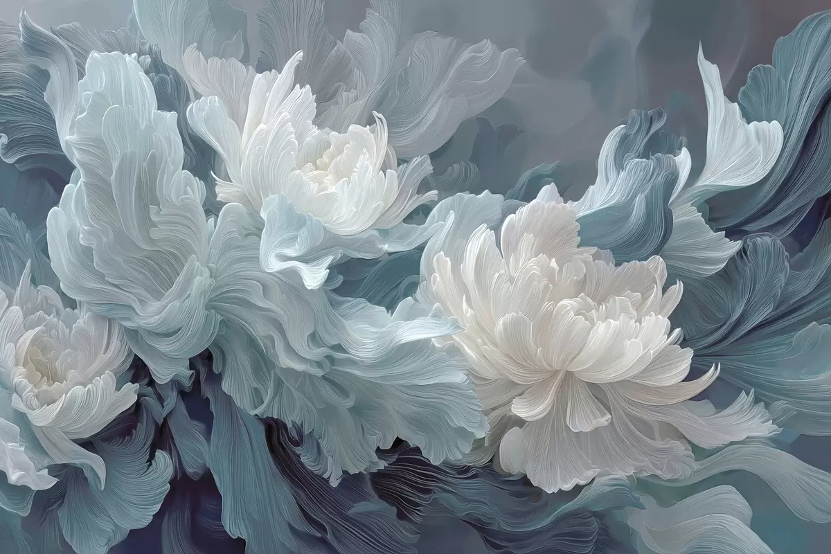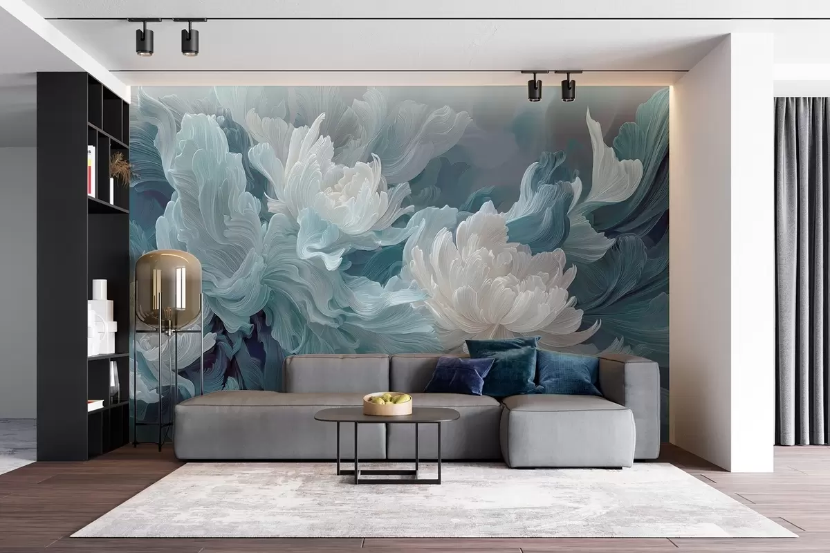 Fototapetak Absztrakt virágok kék és türkiz árnyalatokban Nr. w09452
