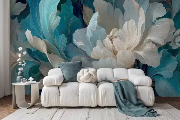 Fototapetak Finom, térfogatos pünkösdi rózsa hűvös színpalettában Nr. w09456