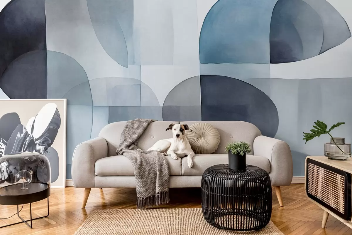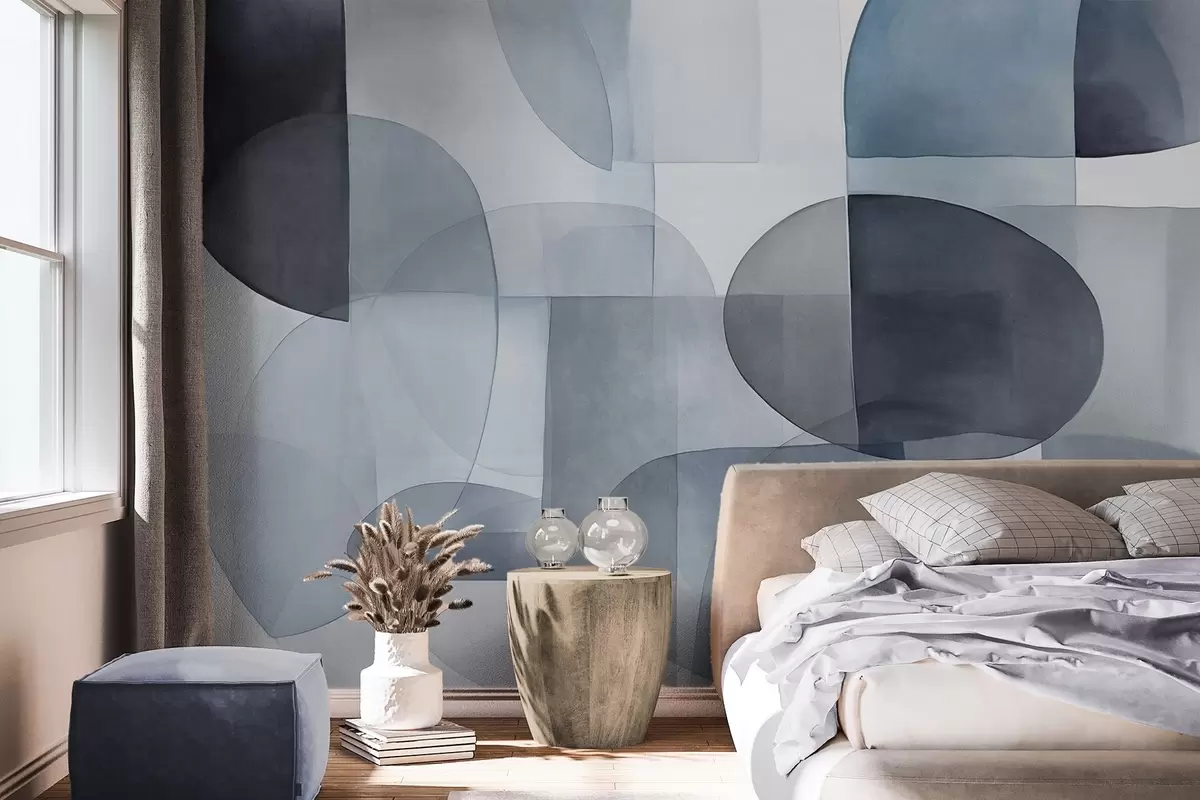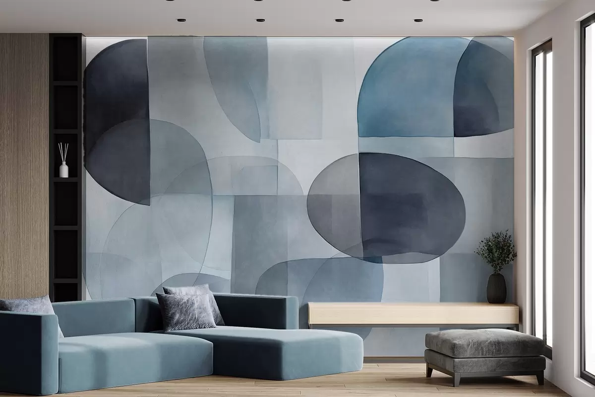 Fototapetak Absztrakt textúrájú formák szürke és kék árnyalatokban, tompított tónusok, minimalista kompozíció, semleges háttér Nr. w09467v1