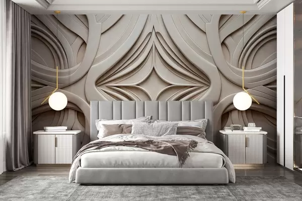 Fototapetak Absztrakt, szimmetrikus, texturált geometrikus nyomtatás, világos bézs szín, art deco stílus, bonyolult részletek Nr. w09473
