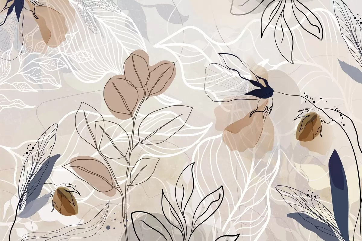 Fototapetak Bézs színű absztrakt háttér levelekkel és virágokkal, modern, minimalista, organikus formák, botanikai nyomtatás Nr. w09487