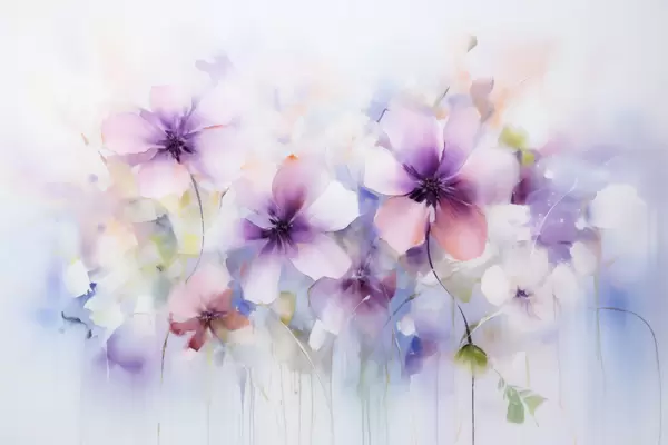 Fototapetak Tavaszi akvarell virágok rózsaszín és lila árnyalatokban Nr. w09502