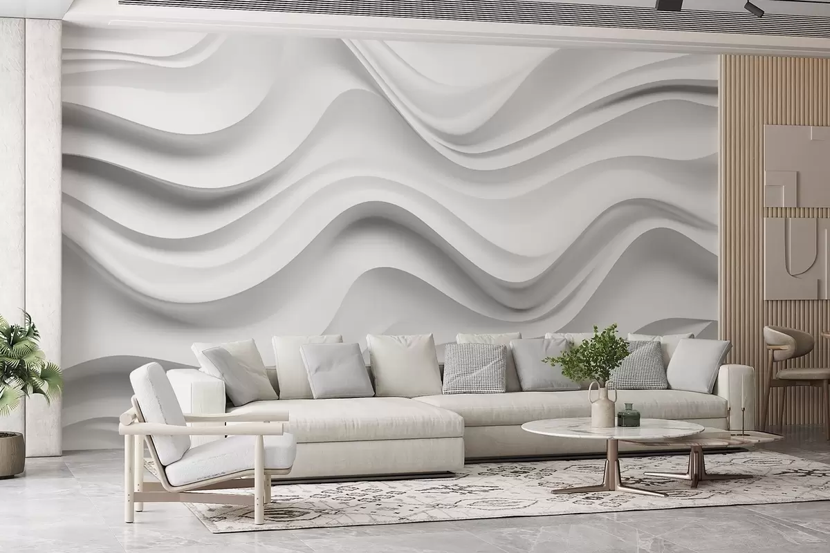 Fototapetak Fekete-fehér absztrakt 3D kompozíció sima hullámokkal Nr. w09506