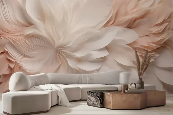 Fototapetak Finom, absztrakt tollak mozgásban, bézs és krém árnyalatokban Nr. w09509