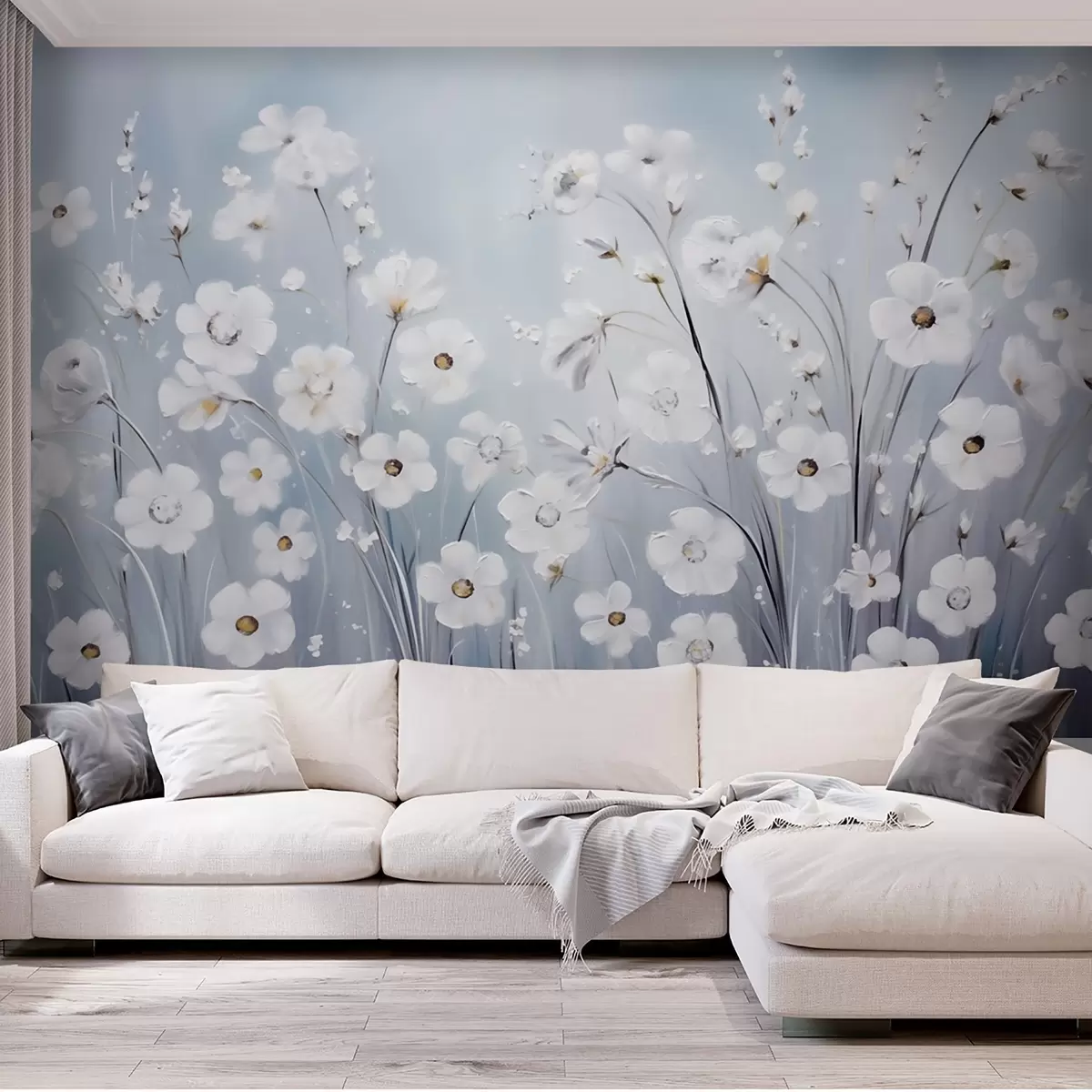 Fototapetak Fehér virágok kék égbolton olajfestmény stílusban Nr. w09516