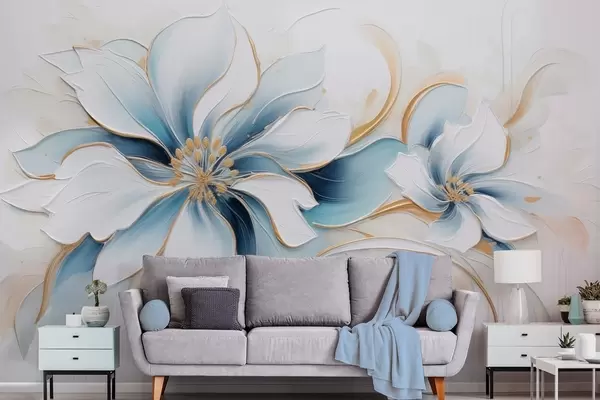 Fototapetak Festői absztrakció kék virágokkal olajfestmény stílusban Nr. w09524