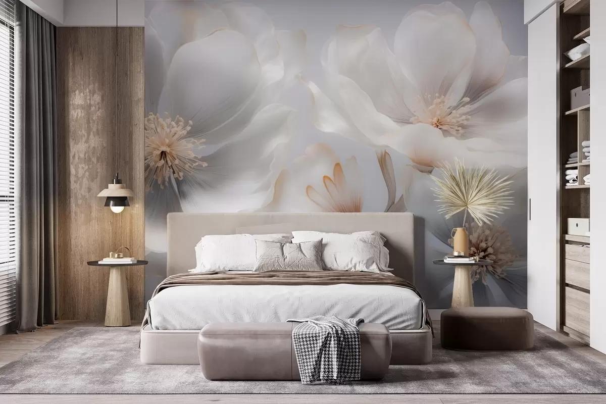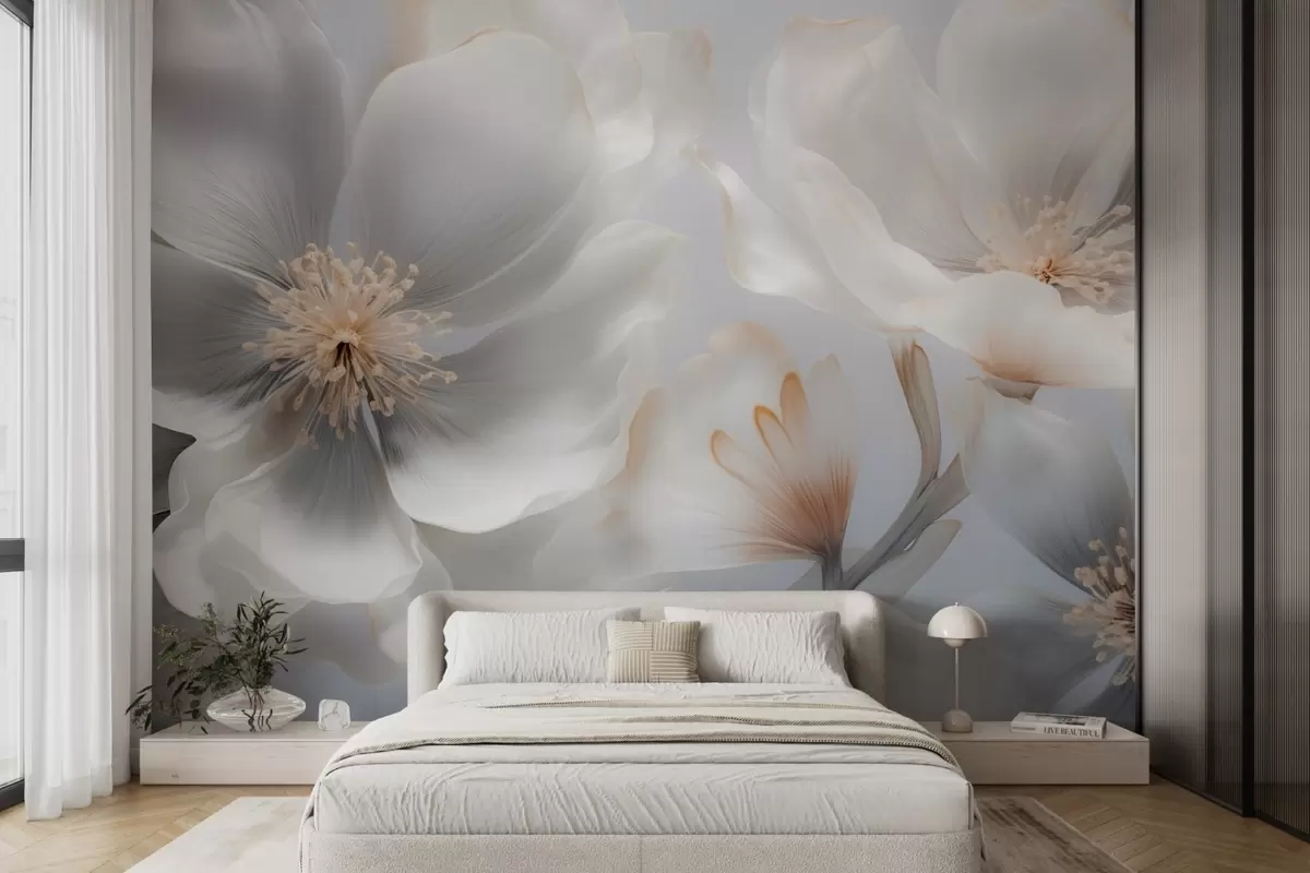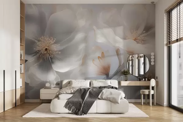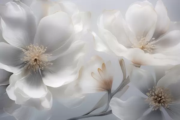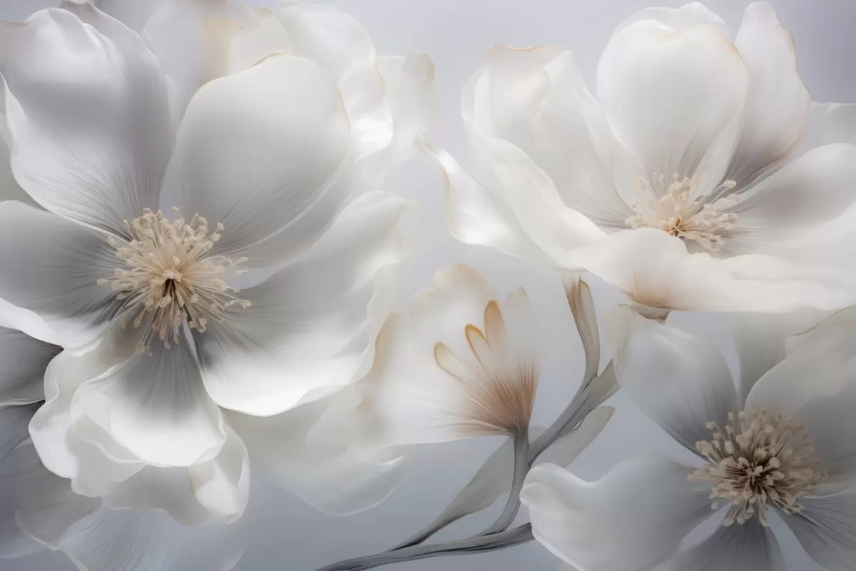 Fototapetak Gyöngyházfényű virágok bézs-szürke és tejkrém színárnyalatokban Nr. w09527