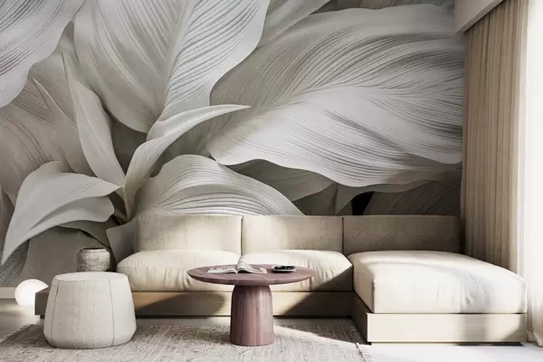 Fototapetak Nagy, texturált fehér levelek, kiemelkedő erekkel, egymást átfedve és mélységet teremtve Nr. w09536