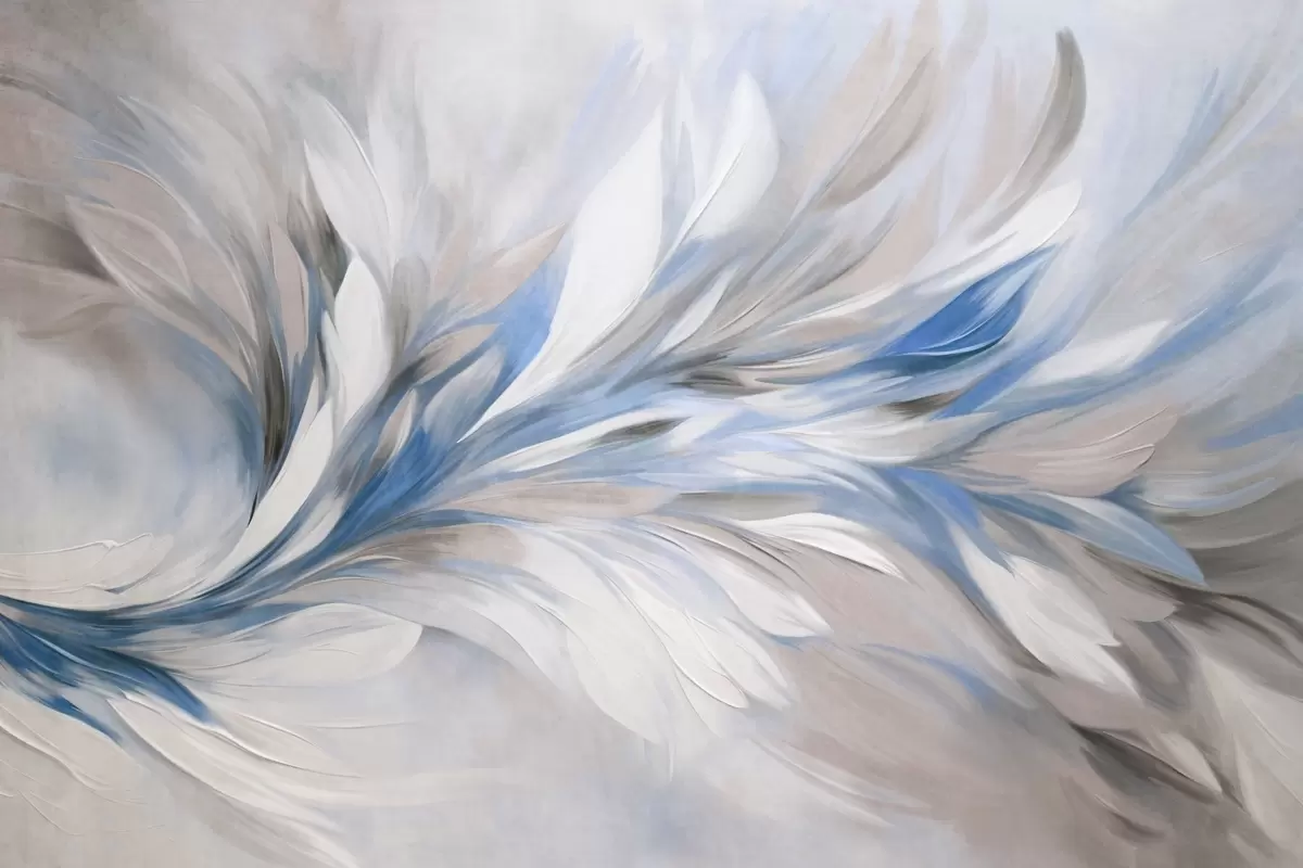 Fototapetak Absztrakt festészeti stílus fehér, kék és szürke texturált ecsetvonásokkal, puha, világos háttérrel Nr. w09552v1